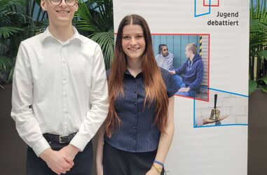 Jolina Funk und Moritz Schmidt vertraten die Wigbertschule beim Nordhessenfinale von Jugend debattiert.