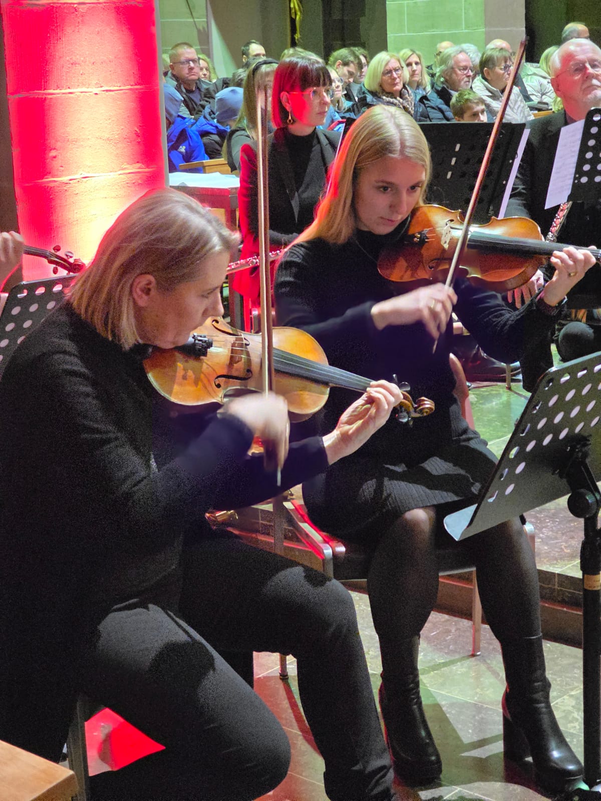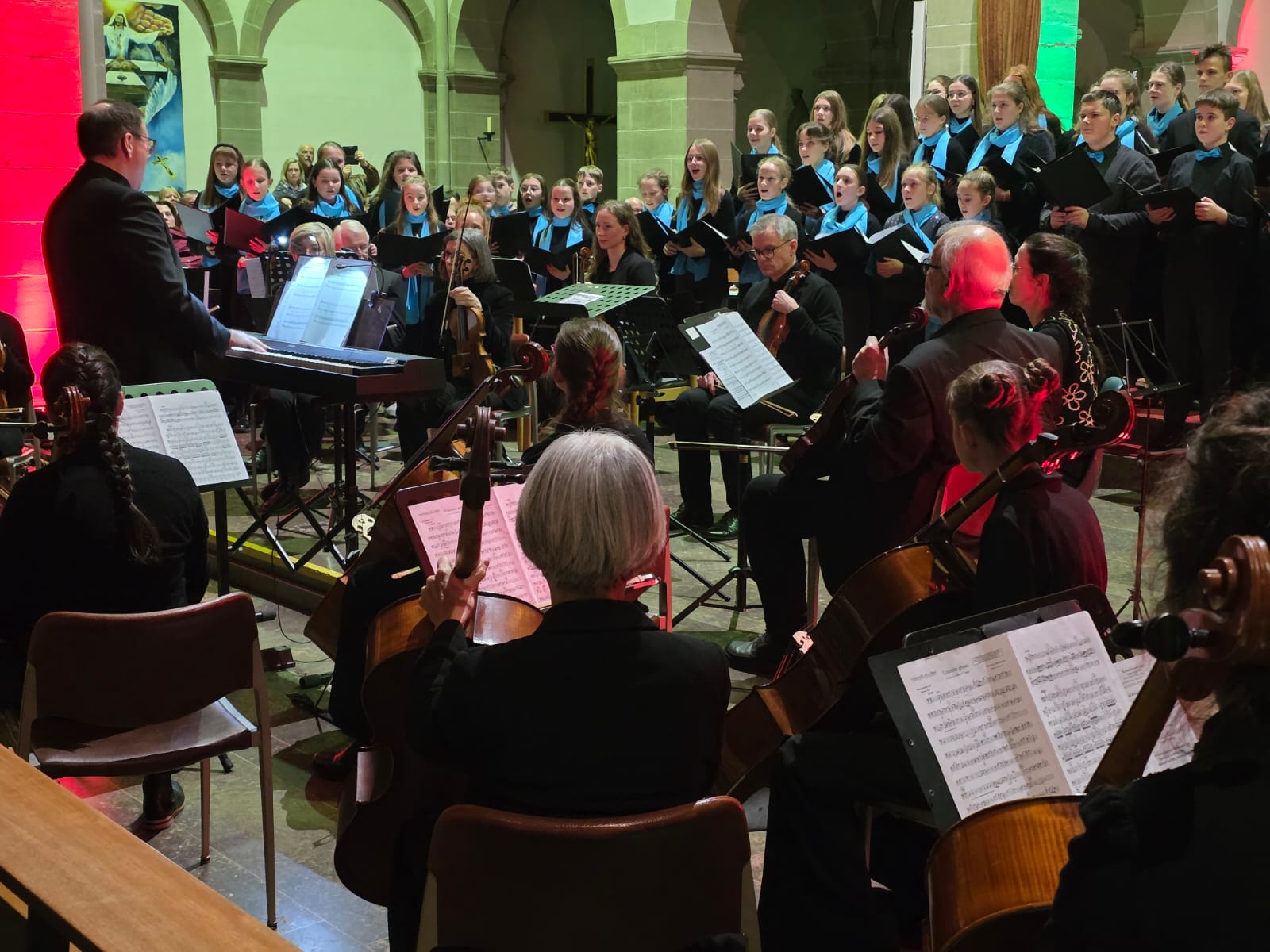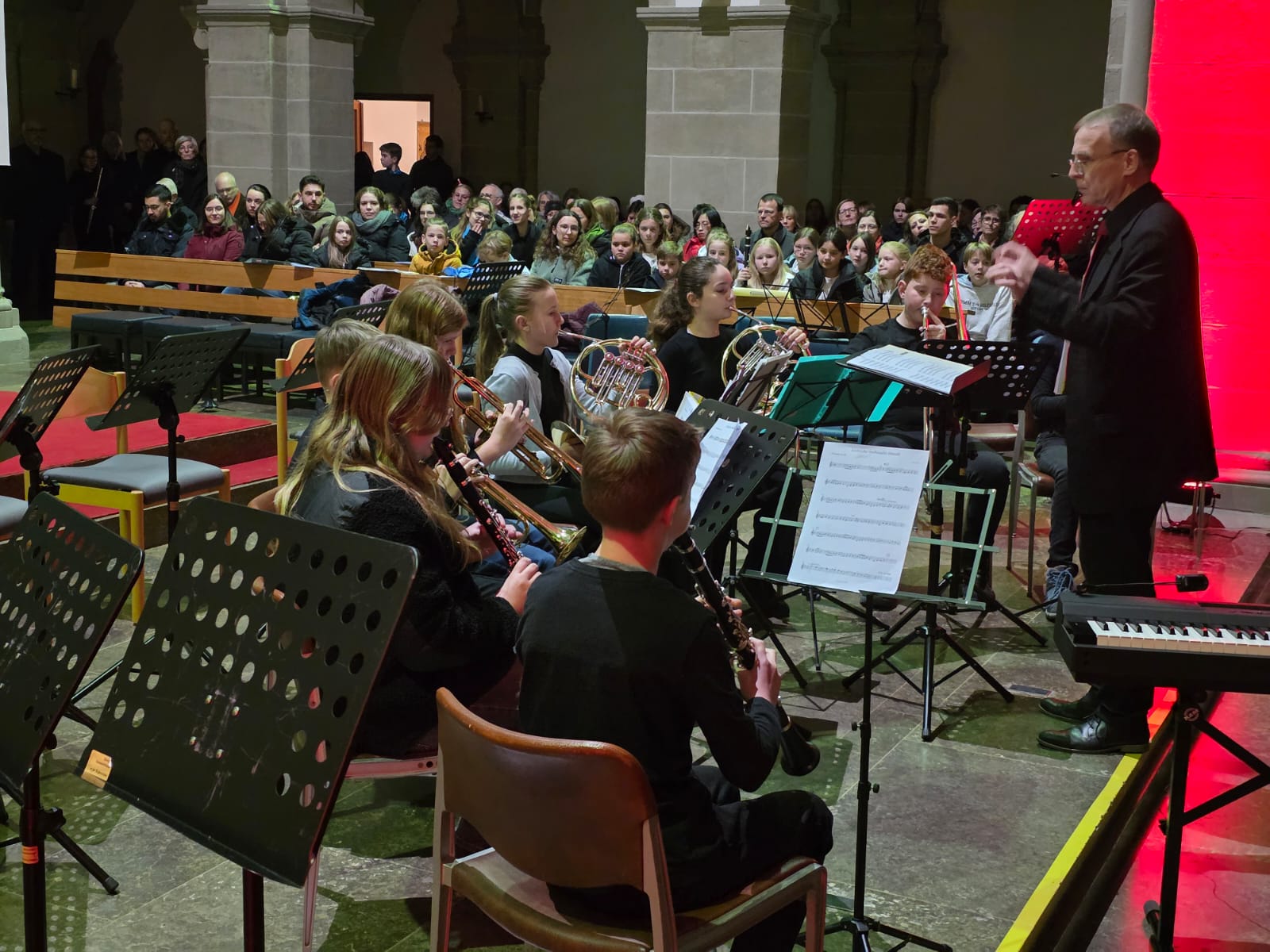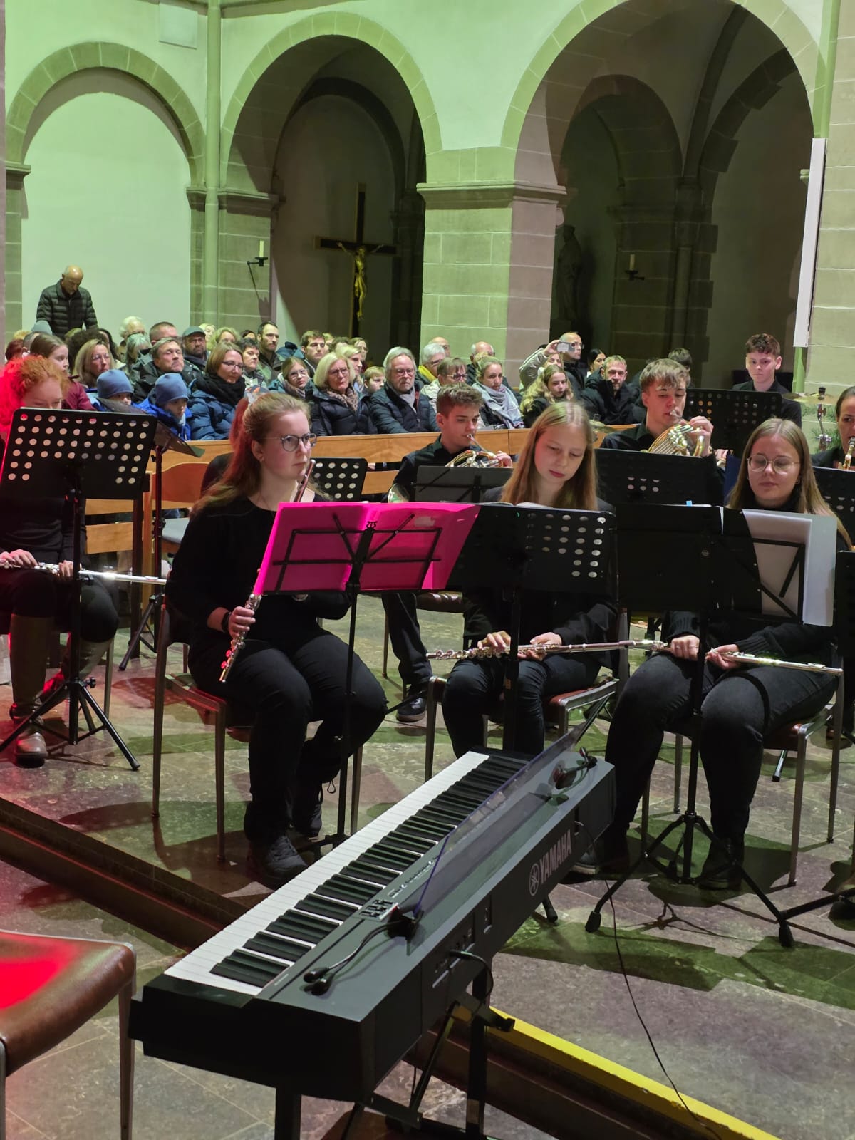 Der Abend klang aus mit „Macht hoch die Tür“, gemeinsam von Streichern, Bläsern, Sängern und allen Anwesenden musiziert. Mit über 100 Mitwirkenden und einem beeindruckenden Programm wurde das Adventskonzert nicht nur zu einem musikalischen Höhepunkt, sondern auch zu einem unvergesslichen Erlebnis, das die Zuhörer in vorweihnachtliche Stimmung versetzte.