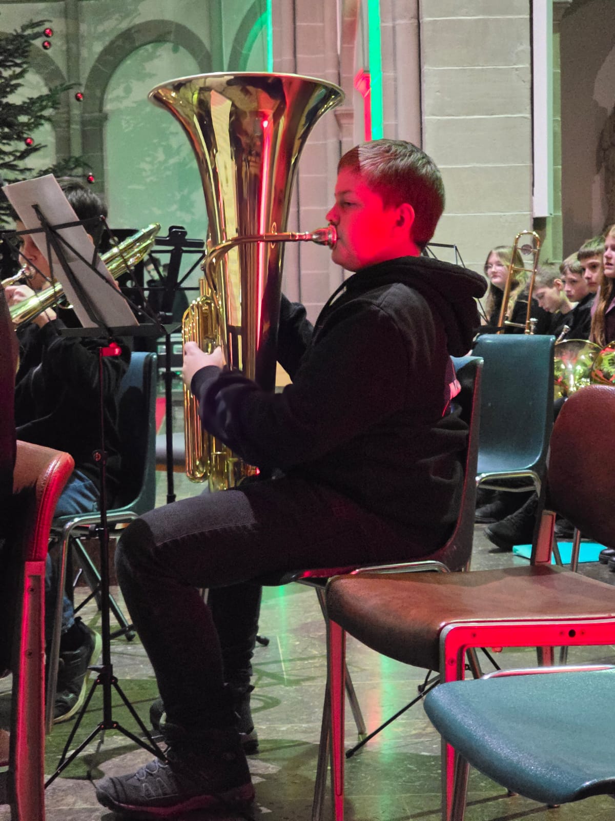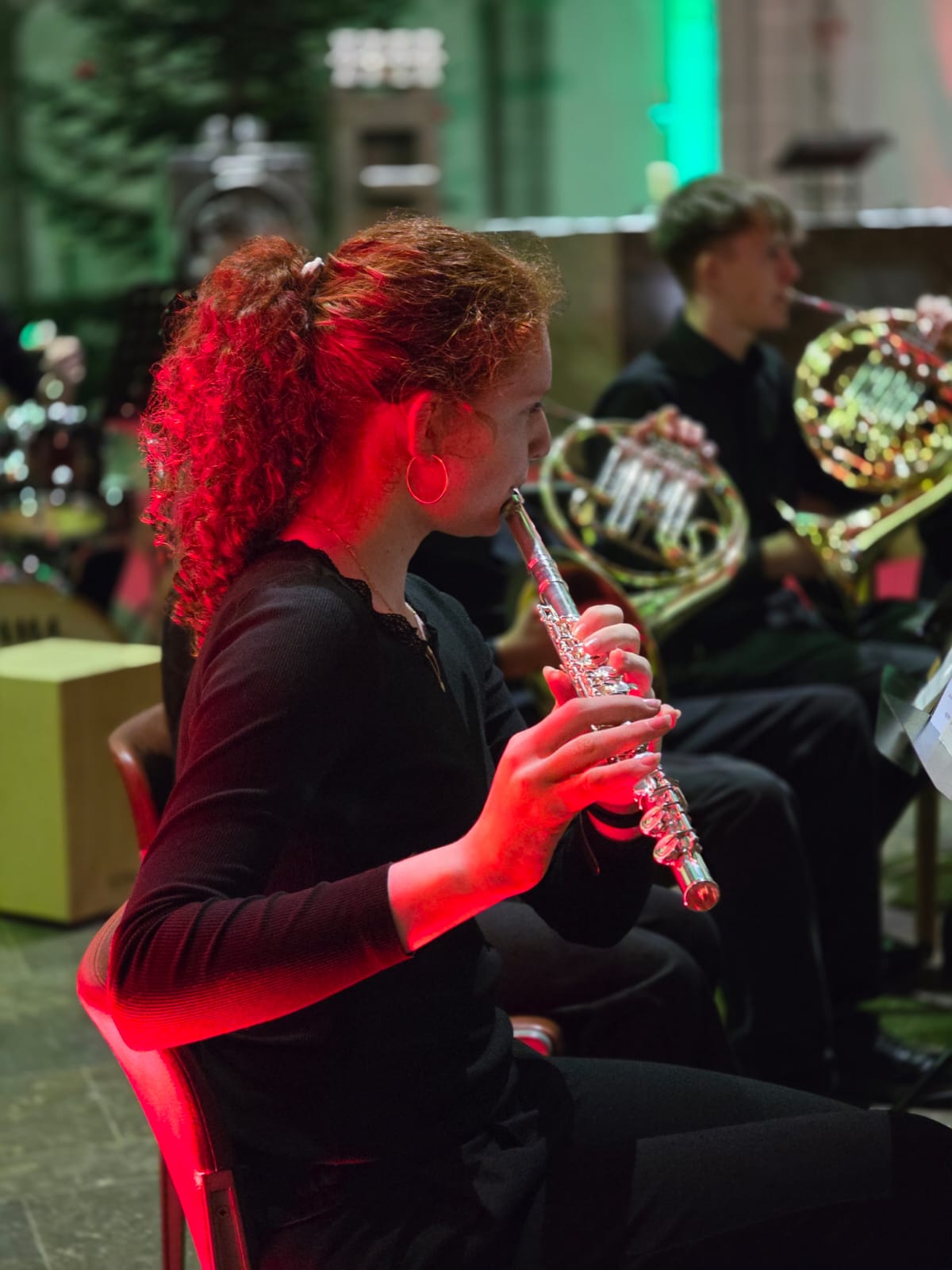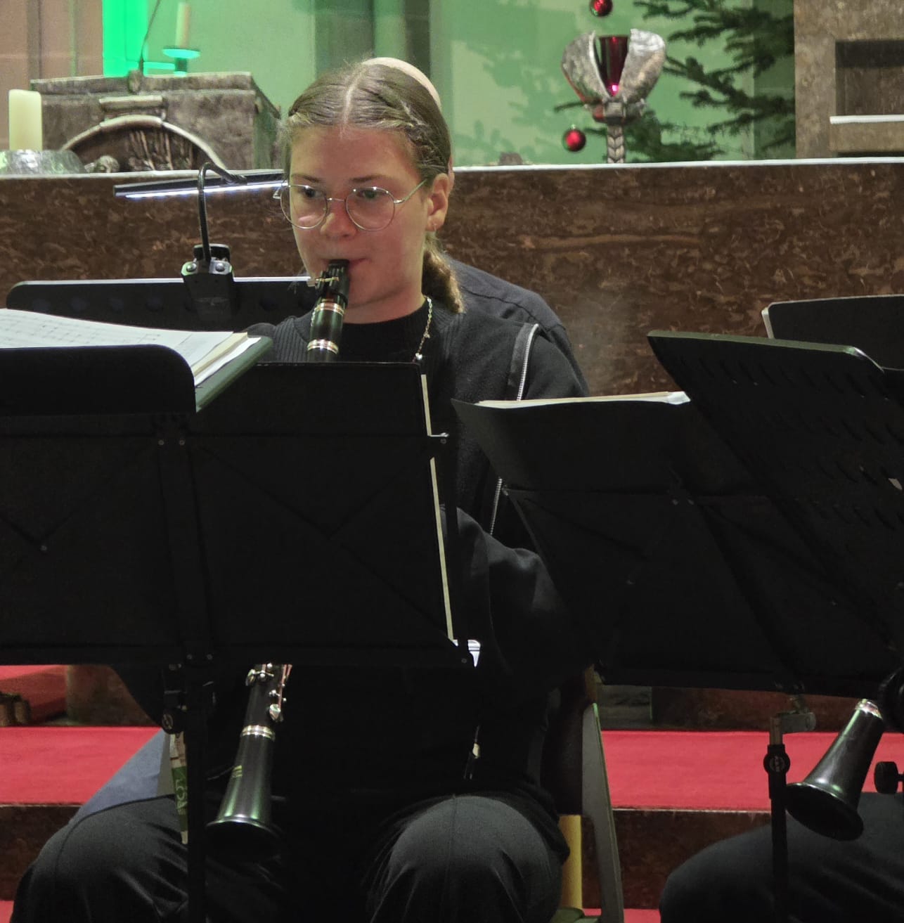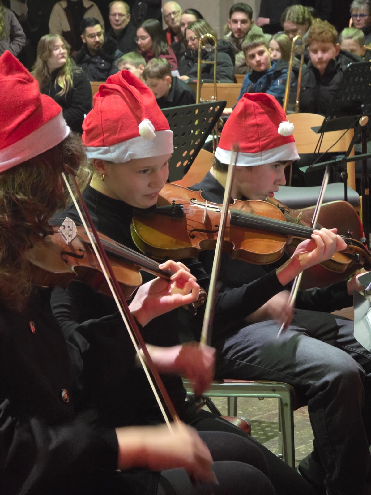Die fortgeschritteneren Bläserinnen und Bläser stellten ihre Leistungen tonsicher im Vororchester „Junior Bl-O-W“ mit dem „Prelude for Christmas“ und mit George Bizets „Farandole“ dem Publikum vor. Weitere bekannte Weihnachtslieder spielten die Jungen Streicher des Kammerorchesters unter Leitung von Katharina Antonovska, die in einigen Familien sicherlich auch am Heiligen Abend zu hören sein werden. Sie wurden von Thomas Nüdling am Klavier begleitet.