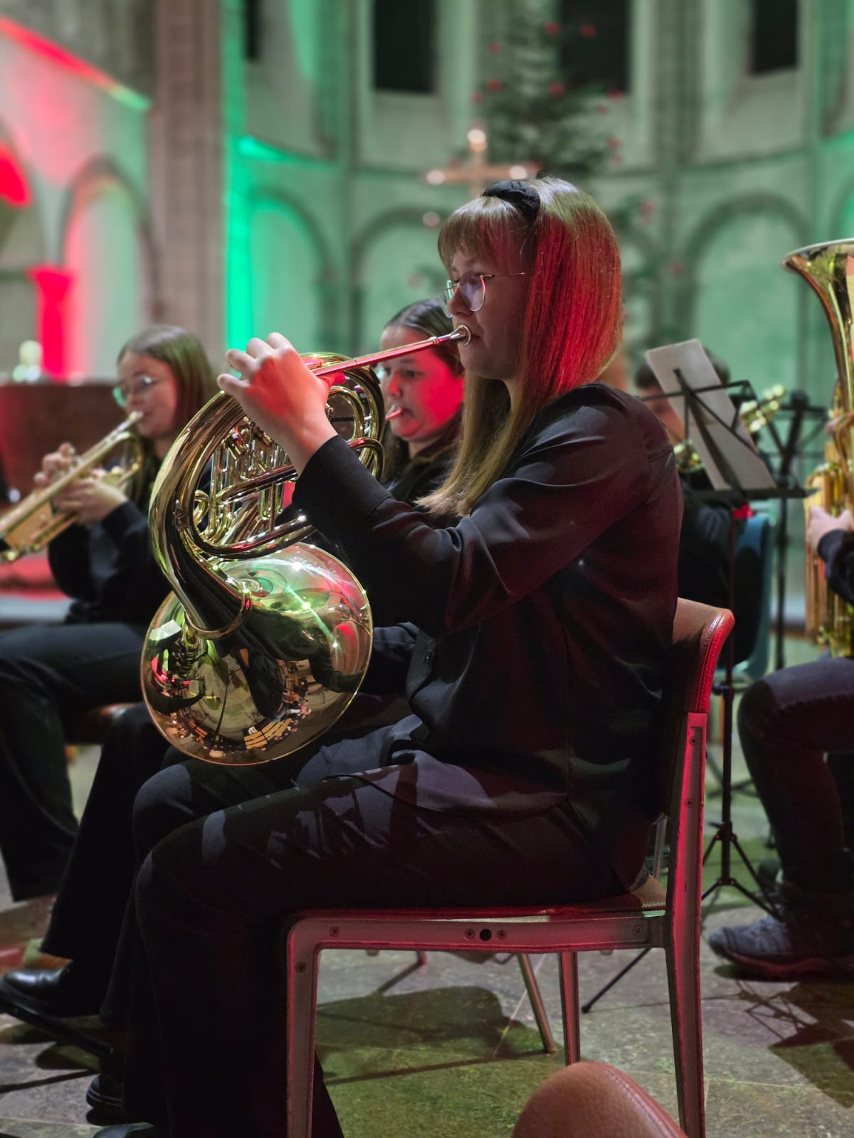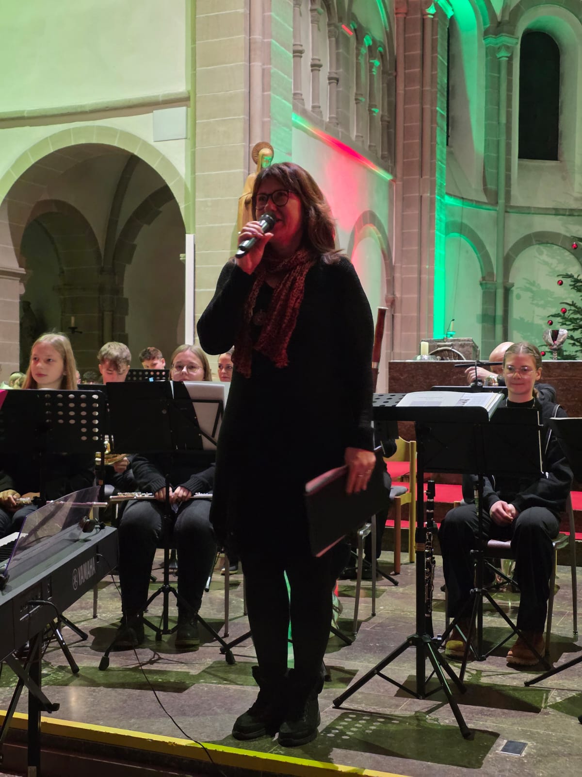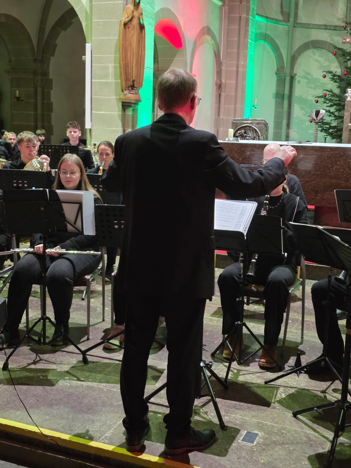 Vielfältige Klangfarben und kreative Interpretationsweisen sind Kennzeichen des Blasorchester „Bl-O-W“, das unter Leitung von Martin Genßler die traditionelle englische „Yorkshire Ballad“ von James Barnes aufführte. Darauf folgten „Oggi è nato“ im Arrangement von Bald Wyntin, das die italienische Weihnachtsmusik in die Klosterkirche brachte, und „Christmas Swings“, bei dem das Blasorchester seine rhythmischen und harmonischen Fähigkeiten gut präsentieren konnte.