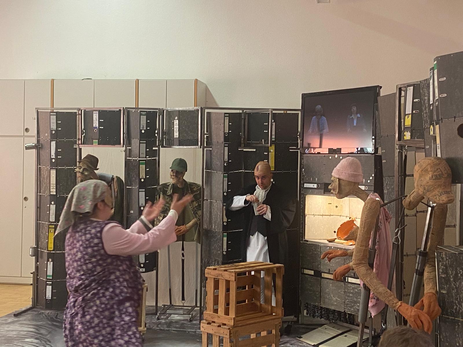 Anfang November konnten die Jahrgangsstufen Q1 und Q3 das Drama "Der Zerbrochene Krug" von Heinrich von Kleist in den Räumlichkeiten der Konrad-Zuse-Schule in gespielter Form kennenlernen. Das freieTheater „THEATERmobileSPIELE“ aus Karlsruhe überzeugte die Schülerinnen und Schüler mit einem ausgereiften Bühnenbild und zwei starken Schauspieltalenten.
