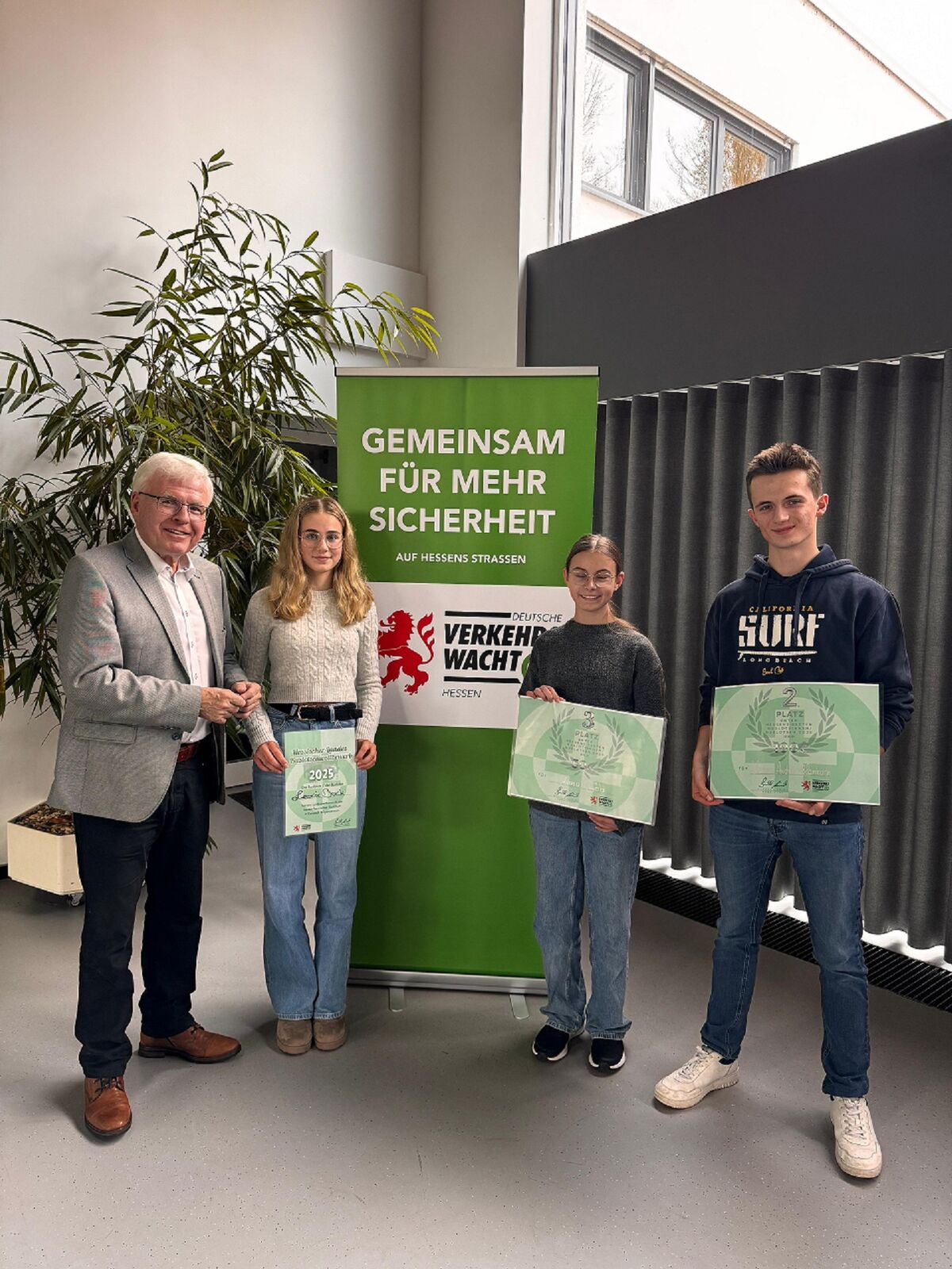 Dr. Hendrik Schüler vom Hessischen Ministerium für Wirtschaft, Energie, Verkehr und Landesentwicklung richtete ein Grußwort an die Teilnehmenden und betonte neben der Bedeutung von Verkehrssicherheit besonders den lobenswerten Einsatz der jungen Bewerberinnen und Bewerber: „Buslotsinnen und Buslotsen übernehmen Verantwortung für andere und leisten damit einen wichtigen Beitrag für ein sicheres Miteinander auf dem Schulweg.“