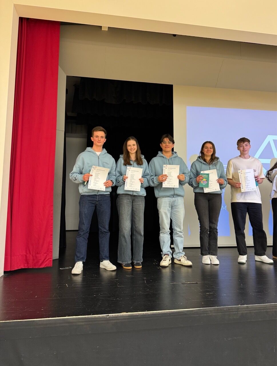 Besonders erfolgreich war die Gruppe bestehend aus Neele Schleicher, Sophie Mohr, Henry Hambach, Jonas Raschka und Tolga Güngör, die sich unter insgesamt zwölf teilnehmenden Teams einen hervorragenden dritten Platz sichern konnte. Im zweiten Team bestehend aus Anna Lühn, Miriam Klüber, Kseniia Sharova und Adrian Burek wurde ebenfalls fleißig geknobelt. Auch in der Einzelwertung gab es einen bemerkenswerten Erfolg: Henry Hambach erreichte den zweiten Platz in der Einzelwertung und gehörte damit nicht nur zu den besten Teilnehmern des gesamten Wettbewerbs, sondern gewann die Teilnahme an einer mathematischen Modellierungswoche.