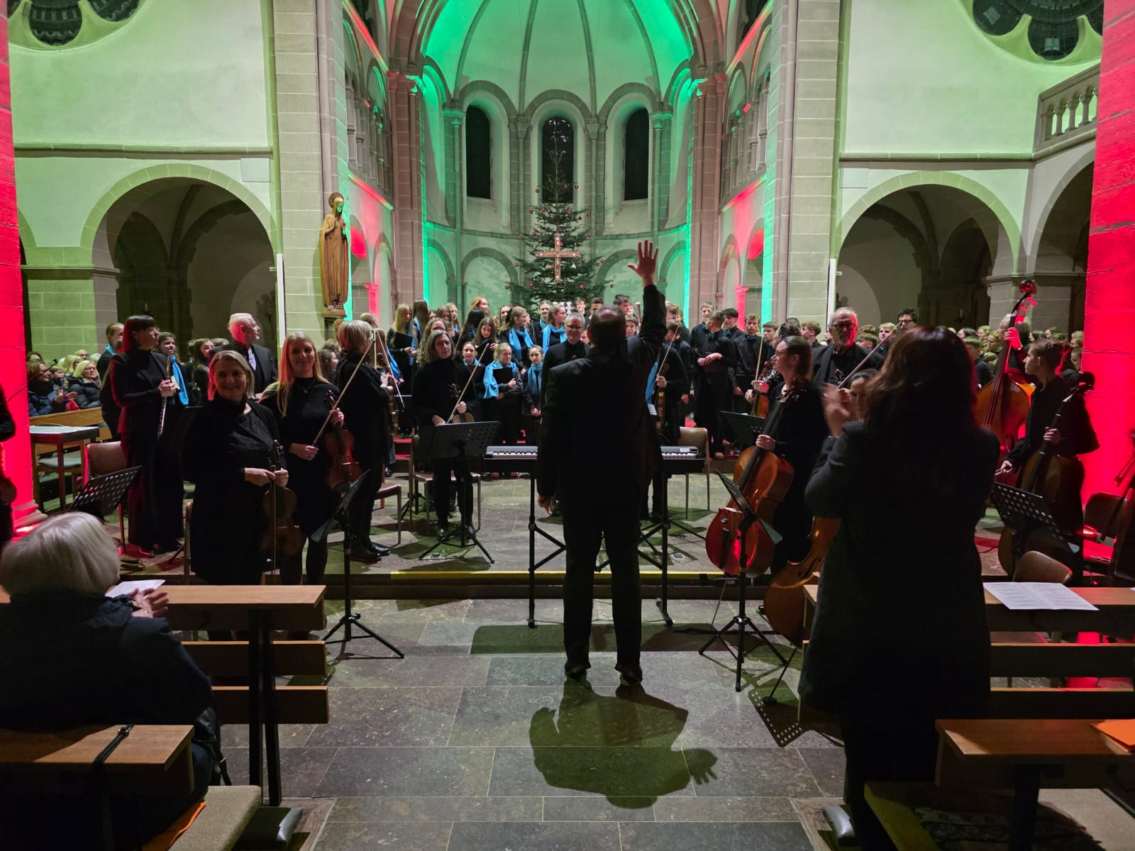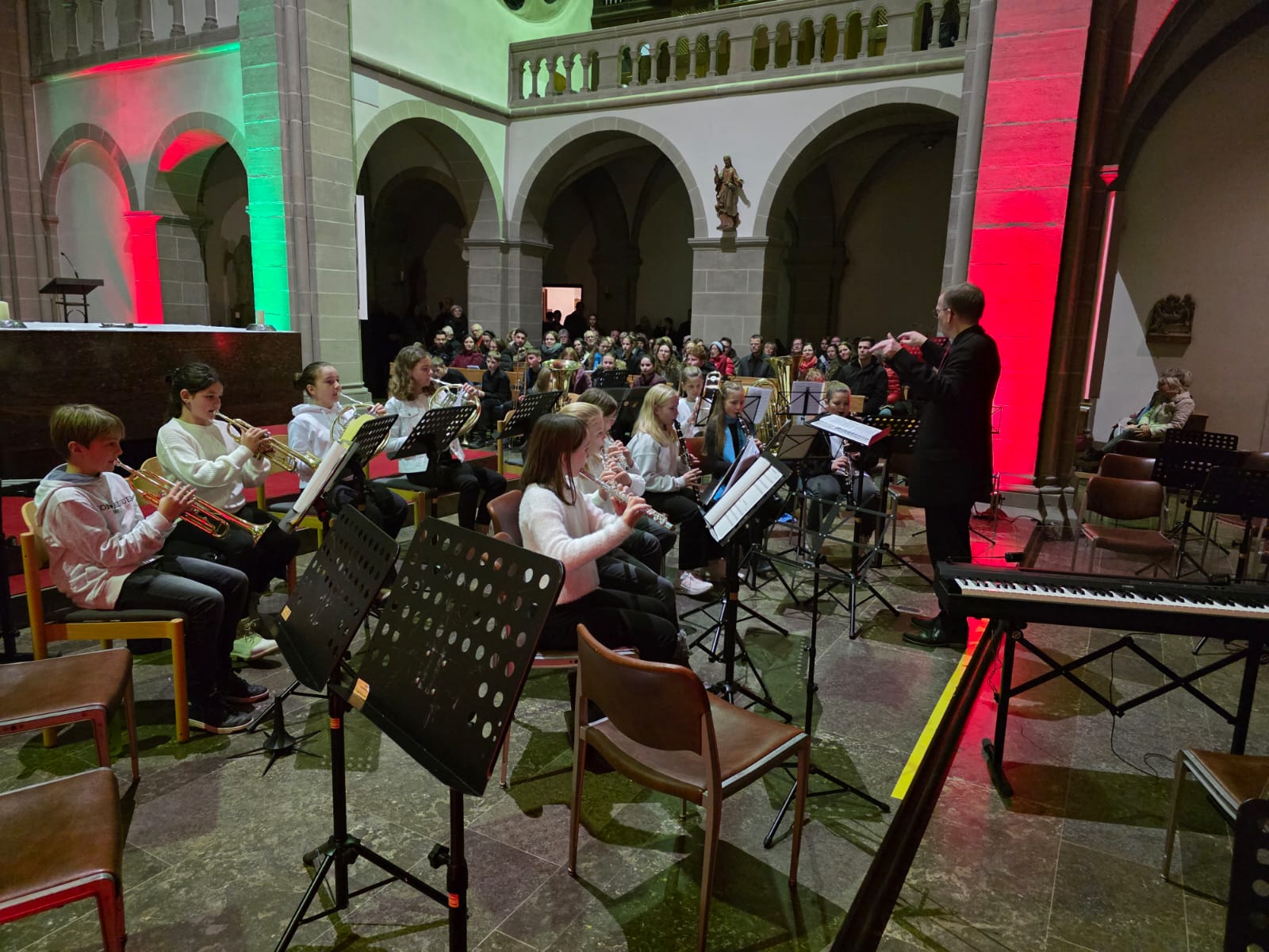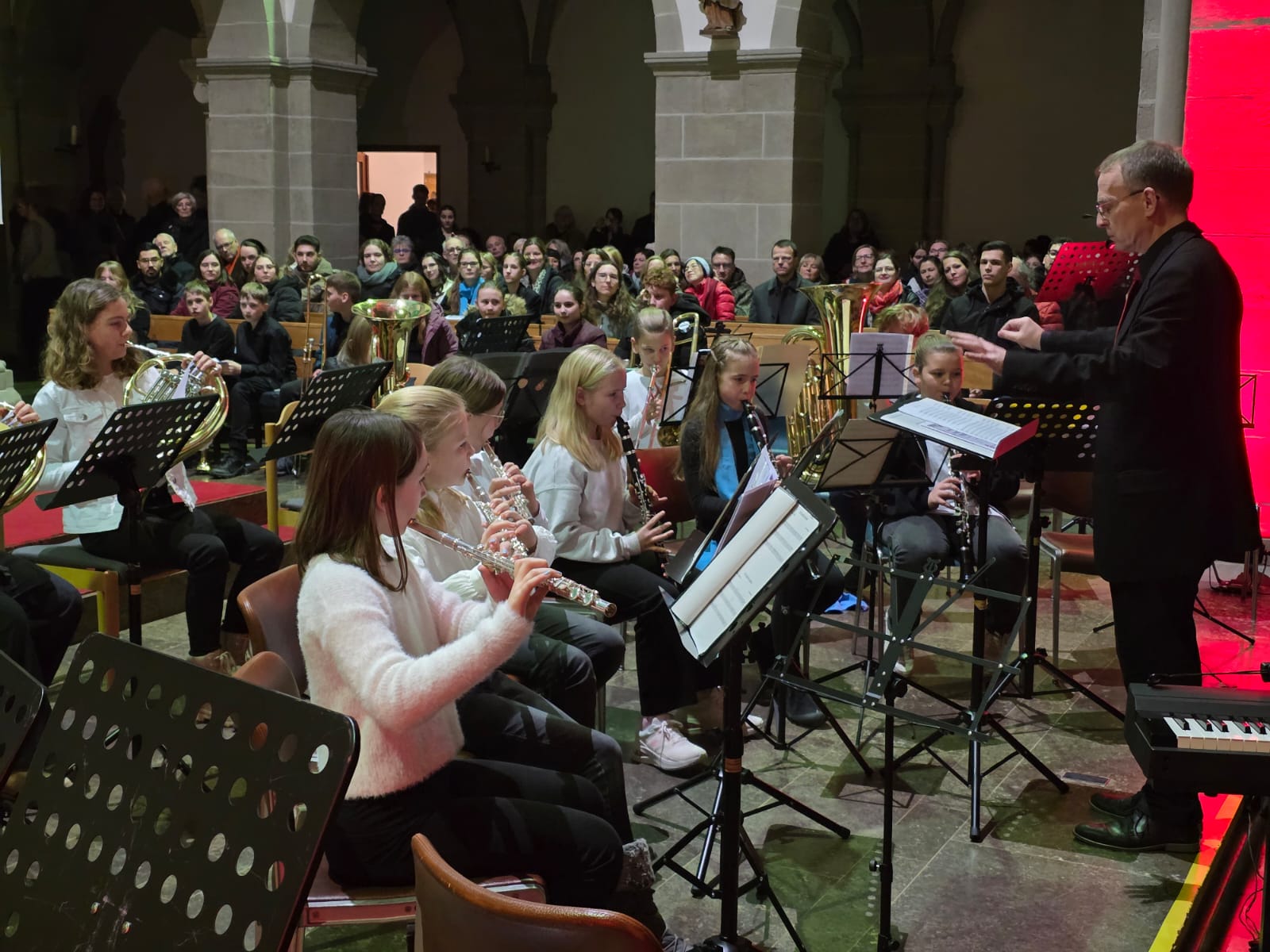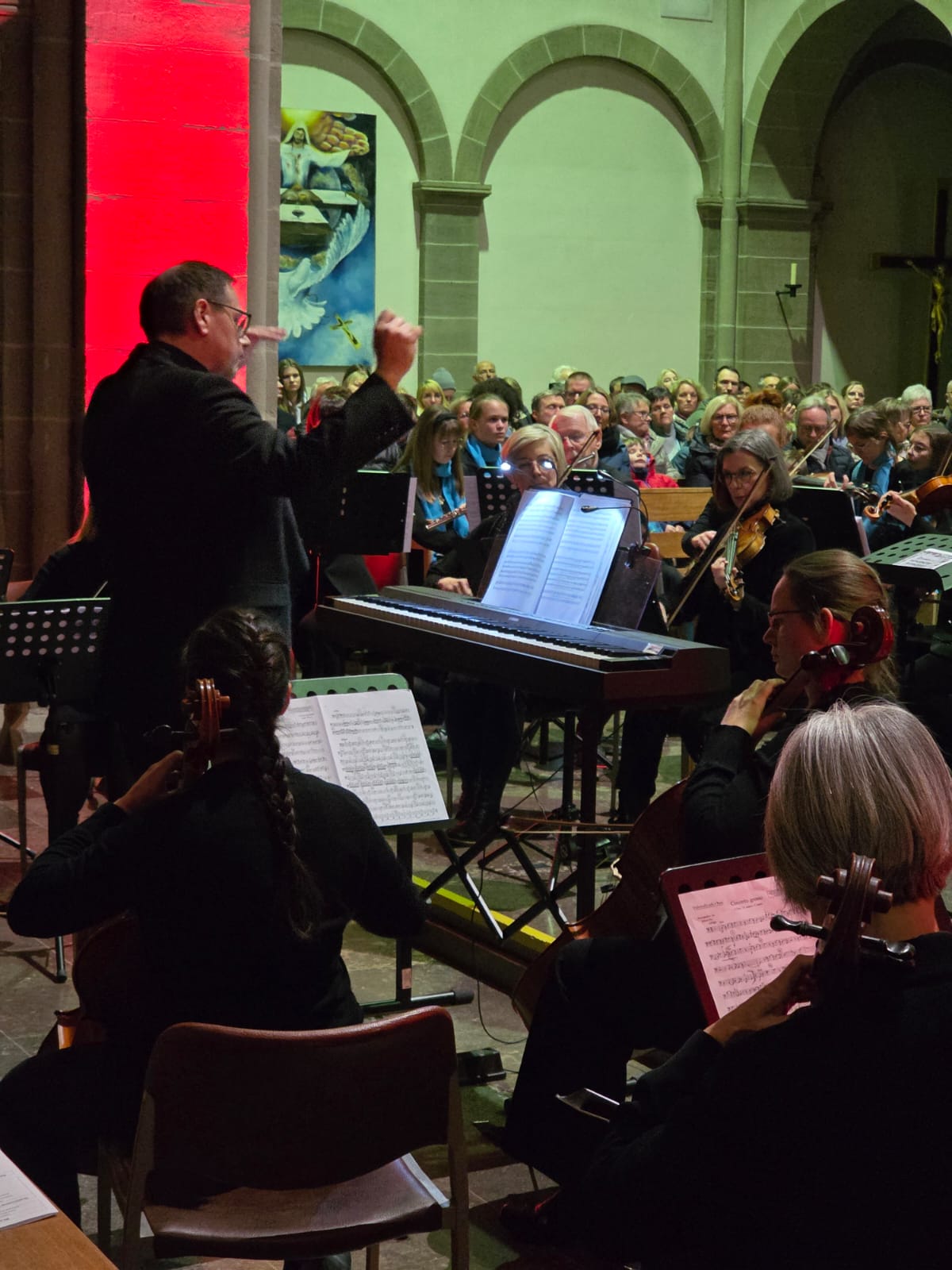 Der Abend klang aus mit „Macht hoch die Tür“, gemeinsam von Streichern, Bläsern, Sängern und allen Anwesenden musiziert. Mit über 100 Mitwirkenden und einem beeindruckenden Programm wurde das Adventskonzert nicht nur zu einem musikalischen Höhepunkt, sondern auch zu einem unvergesslichen Erlebnis, das die Zuhörer in vorweihnachtliche Stimmung versetzte.
