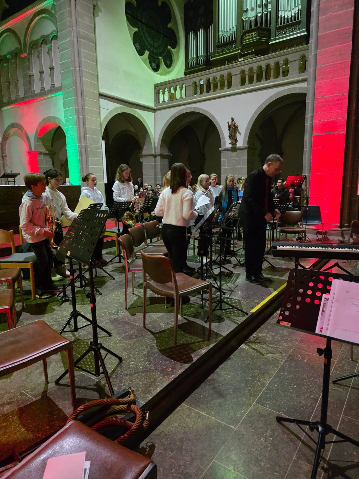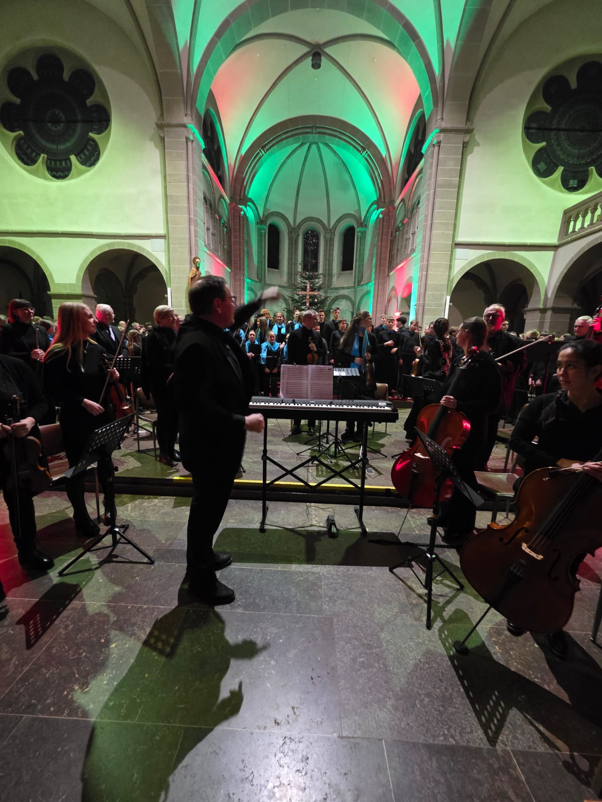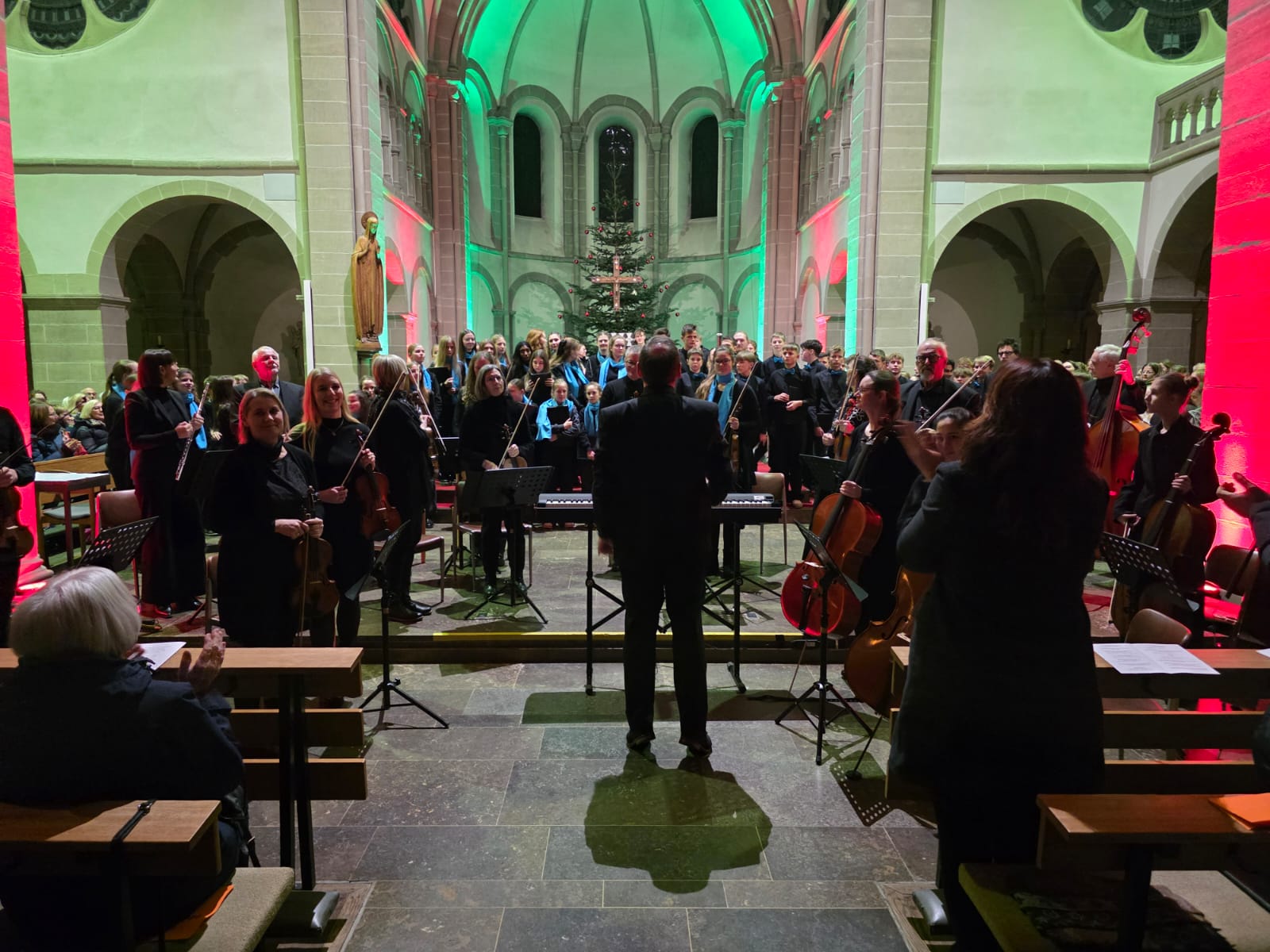 Der Abend klang aus mit „Macht hoch die Tür“, gemeinsam von Streichern, Bläsern, Sängern und allen Anwesenden musiziert. Mit über 100 Mitwirkenden und einem beeindruckenden Programm wurde das Adventskonzert nicht nur zu einem musikalischen Höhepunkt, sondern auch zu einem unvergesslichen Erlebnis, das die Zuhörer in vorweihnachtliche Stimmung versetzte.