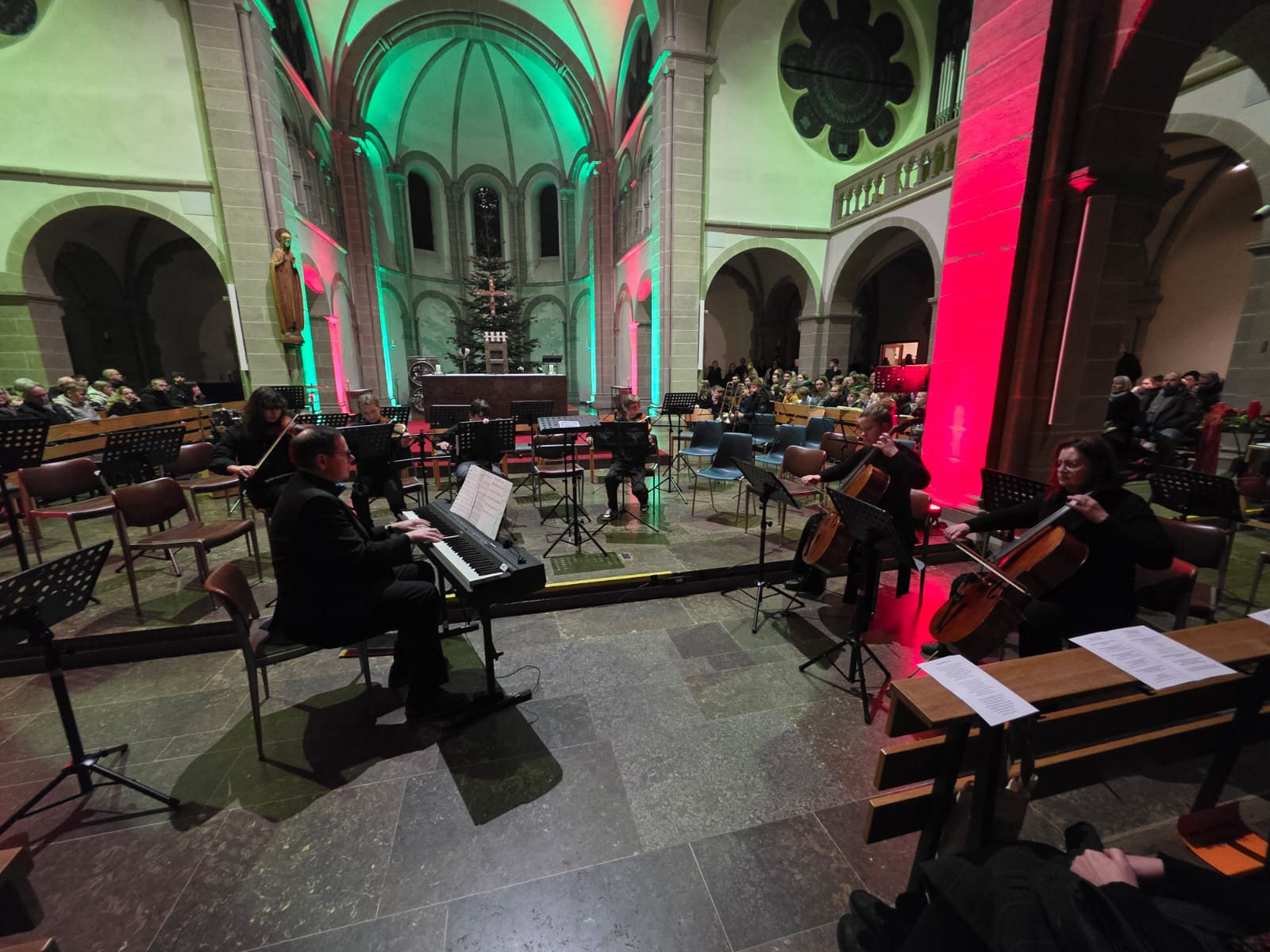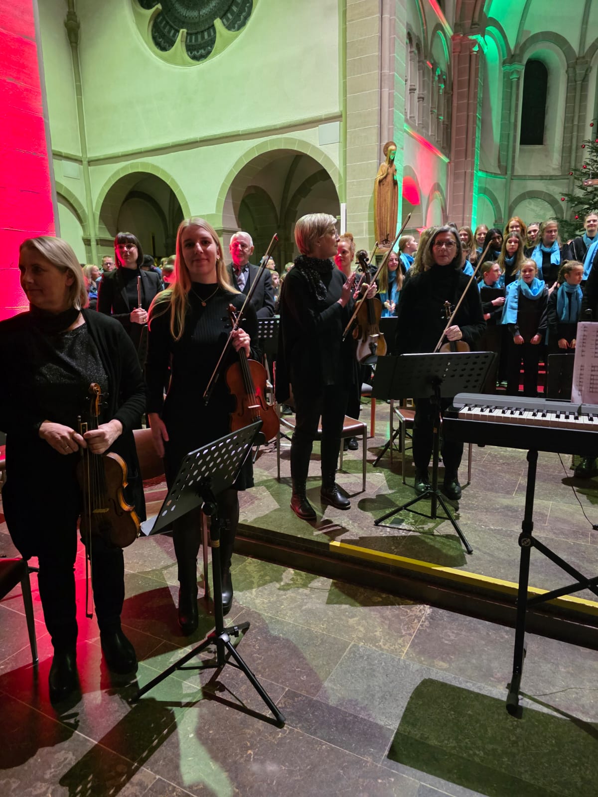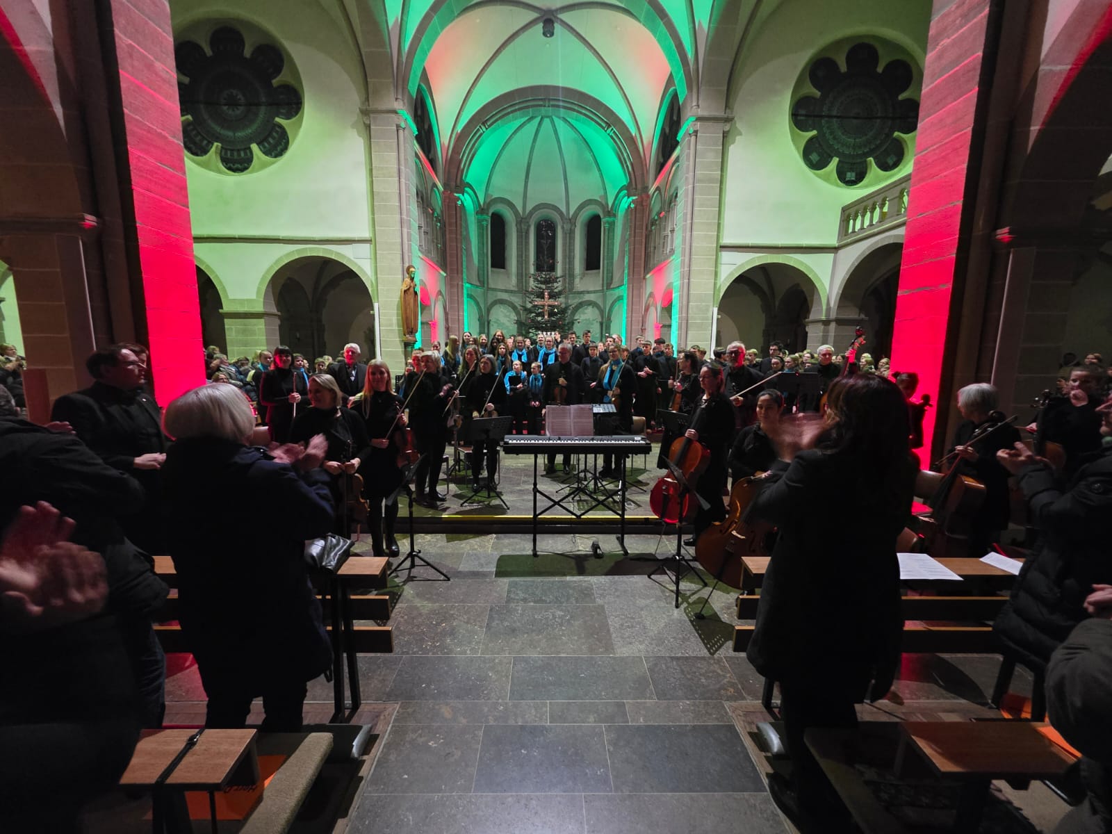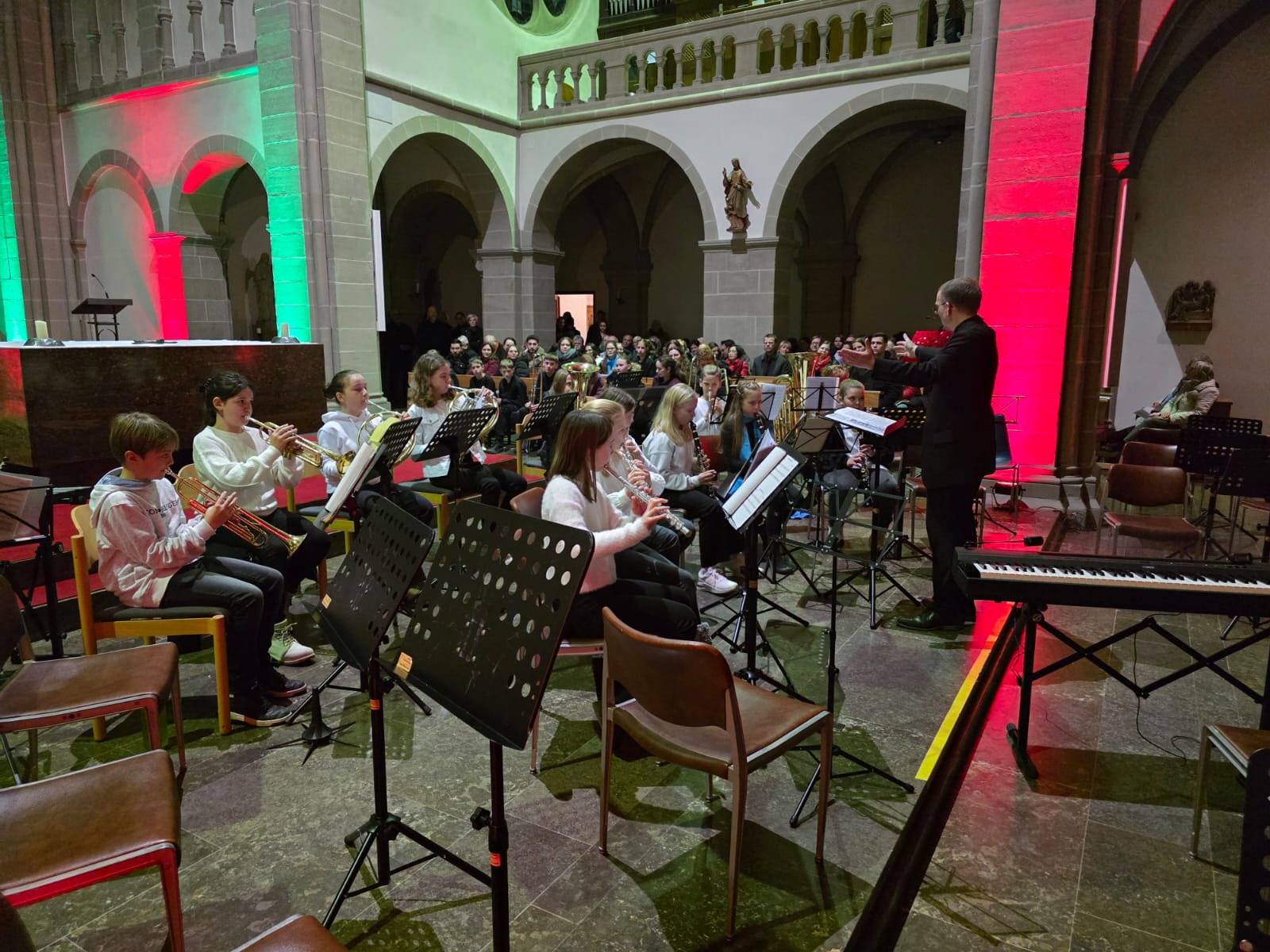 Der Abend klang aus mit „Macht hoch die Tür“, gemeinsam von Streichern, Bläsern, Sängern und allen Anwesenden musiziert. Mit über 100 Mitwirkenden und einem beeindruckenden Programm wurde das Adventskonzert nicht nur zu einem musikalischen Höhepunkt, sondern auch zu einem unvergesslichen Erlebnis, das die Zuhörer in vorweihnachtliche Stimmung versetzte.