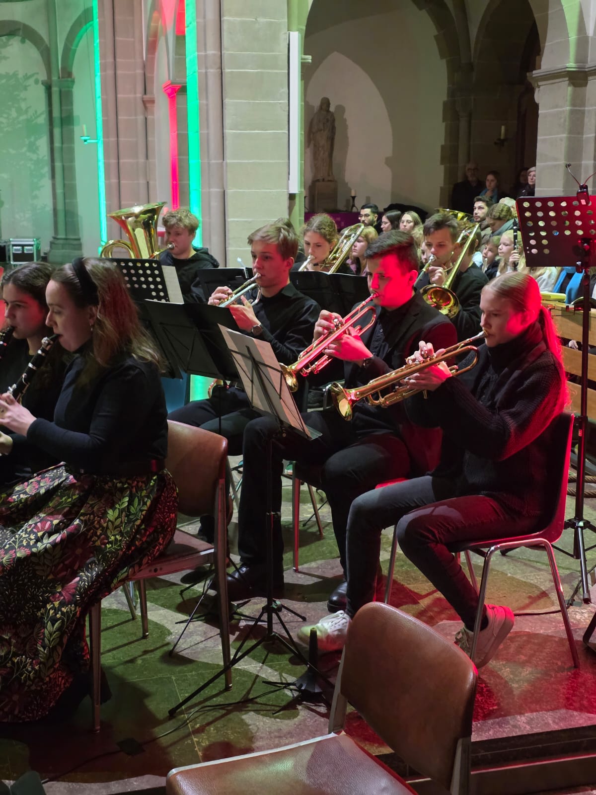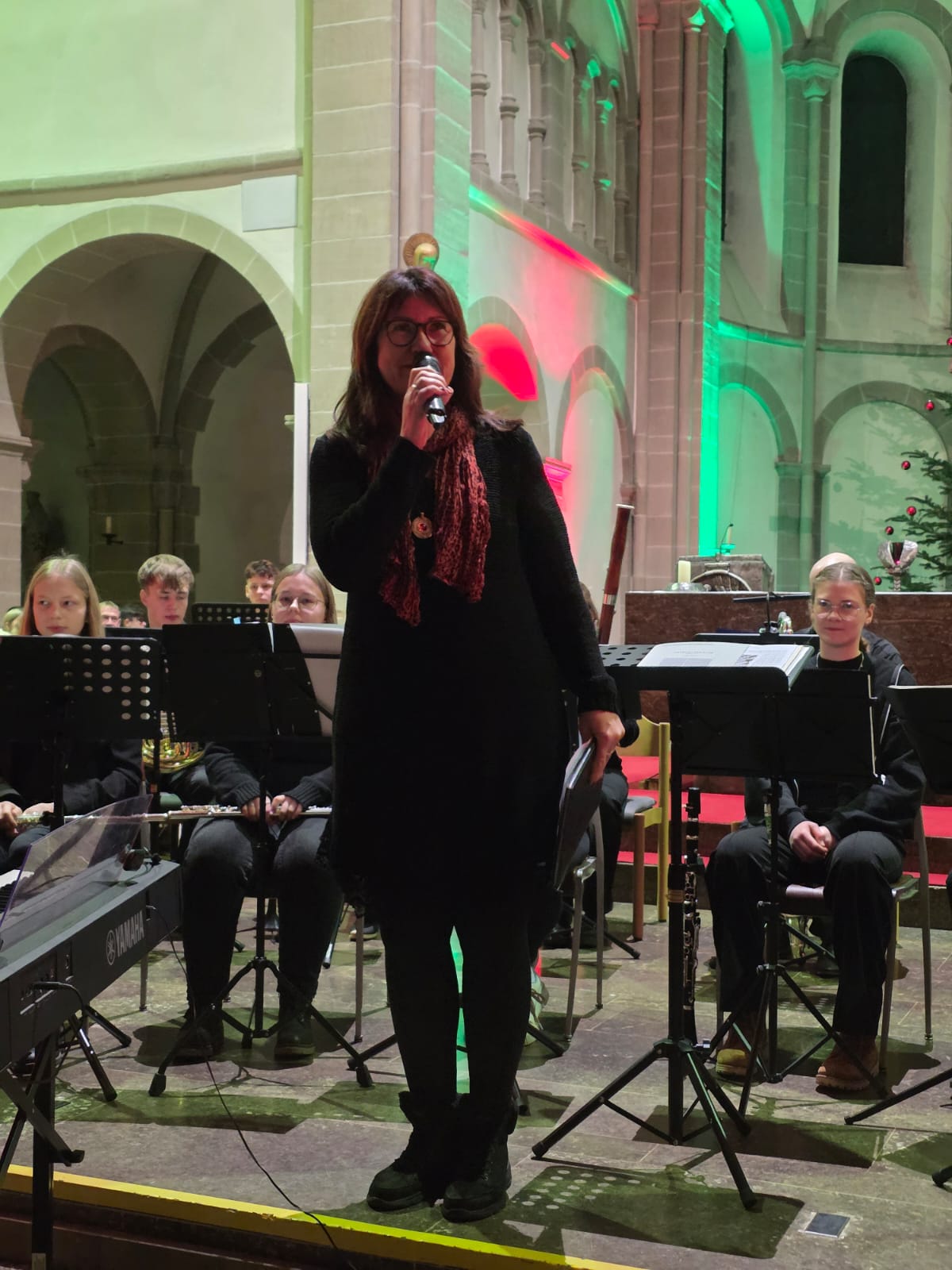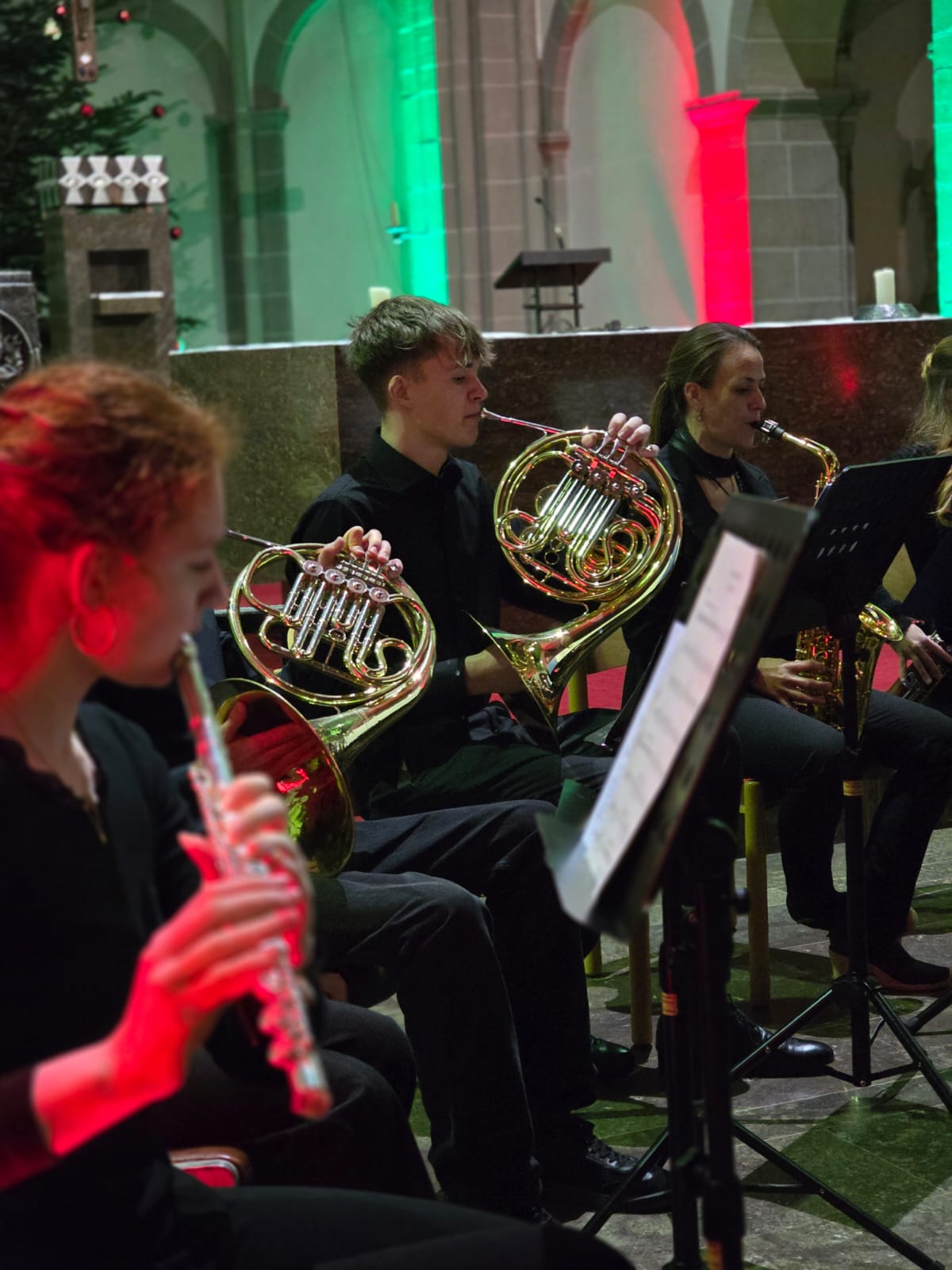 Vielfältige Klangfarben und kreative Interpretationsweisen sind Kennzeichen des Blasorchester „Bl-O-W“, das unter Leitung von Martin Genßler die traditionelle englische „Yorkshire Ballad“ von James Barnes aufführte. Darauf folgten „Oggi è nato“ im Arrangement von Bald Wyntin, das die italienische Weihnachtsmusik in die Klosterkirche brachte, und „Christmas Swings“, bei dem das Blasorchester seine rhythmischen und harmonischen Fähigkeiten gut präsentieren konnte.