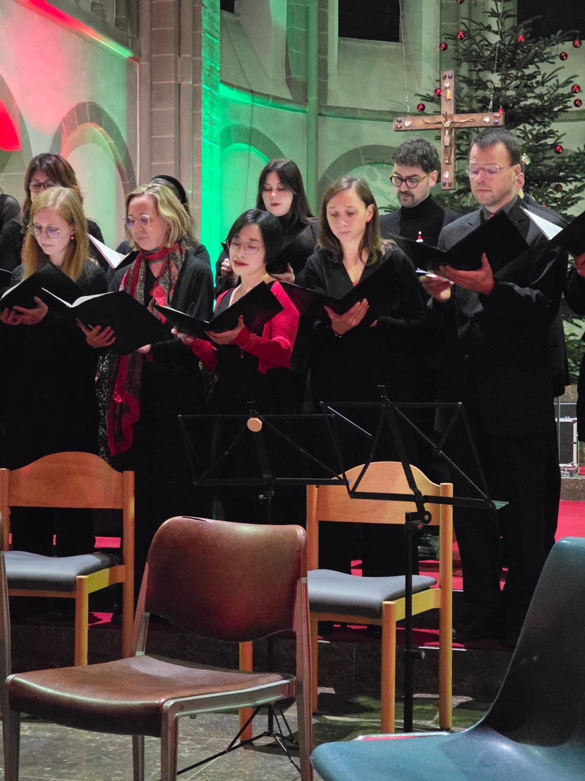 Der Höhepunkt war die gemeinsame Aufführung des Weihnachtsliedes „Zu Bethlehem geboren“ von „WiVox“ und dem Kammerorchester. Im Arrangement von Christopher Tambling konnte die Freude der Weihnacht hier bei den Zuhörerinnen und Zuhörern erlebbar werden: Mit verschiedenen Oberstimmen und Unterstimmen der Chor- und Orchesterstimmen konnte jede der sechs Strophen ihre eigenen Impulse und Emotionen wecken.