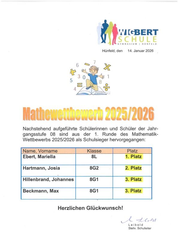 Wir gratulieren den Schulsiegern des diesjährigen Mathewettbewerbs ganz herzlich!