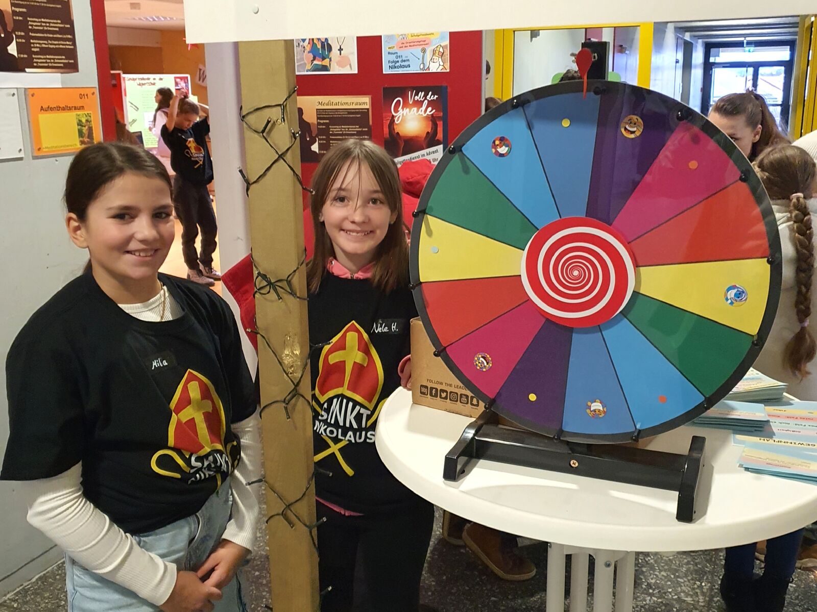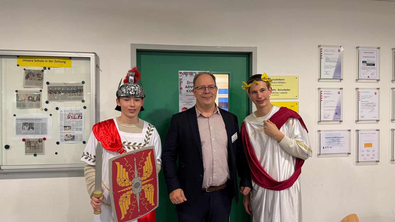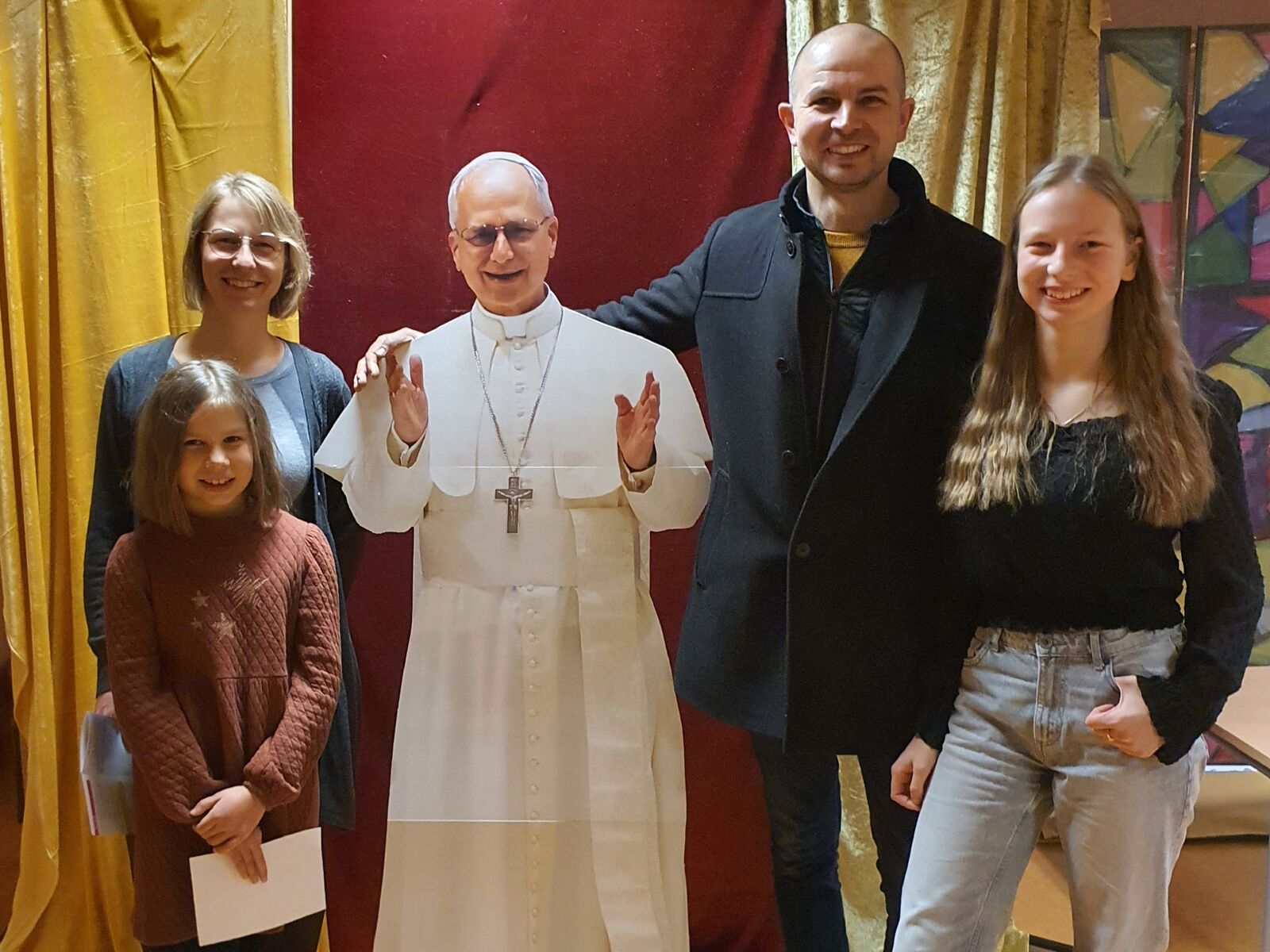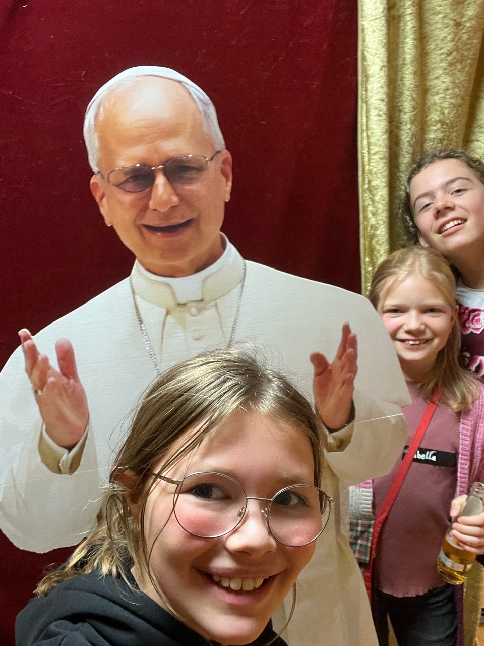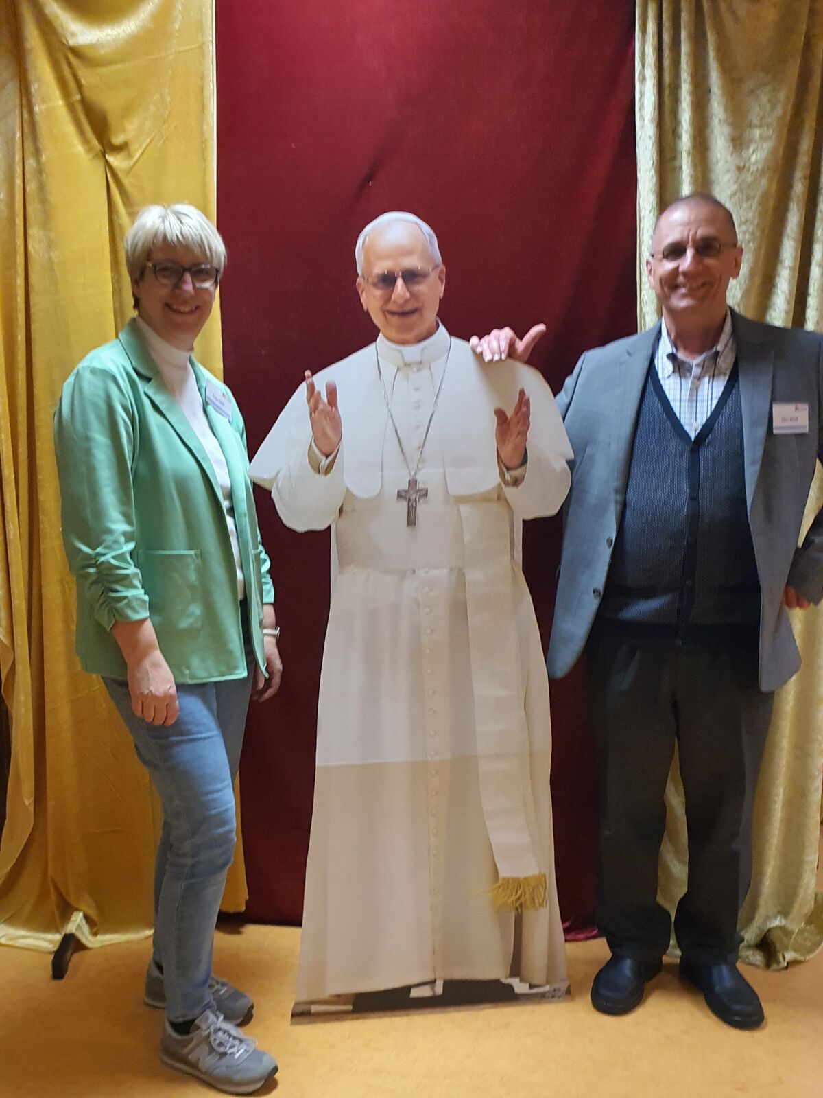 Auch die Sprachen, die Gesellschaftswissenschaften, Kunst, Darstellendes Spiel und die Mathematik boten den interessierten künftigen Schülerinnen und Schülern ein buntes Programm. So konnte man im Raum der „Katholischen Religion“ auch Bilder mit dem lebensgroßen Papst Leo XIV. machen. Natürlich waren auch die Eltern- und Schülervertretung sowie der Förderverein mit Ständen vertreten und informierten über ihre Arbeit.