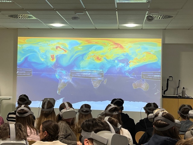 Anfang Februar nahmen die Geographiekurse der Einführungsphase an einer virtuellen Klimaexpedition teil. Das Projekt „Virtual Didactics“ ist Gewinner des Deutschen Awards für Nachhaltigkeitsprojekte 2025 in der Kategorie Aufklärung und Bildung und bot einen eindrucksvollen Zugang zum Thema „Klimawandel“.