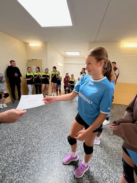 Die Volleyballmädchenmannschaft der U16 (Jahrgänge 2011 und jünger) erreichte am 1. Oktober 2025 in Hünfeld beim Kreisentscheid Jugend trainiert für Olympia einen hervorragenden dritten Platz.